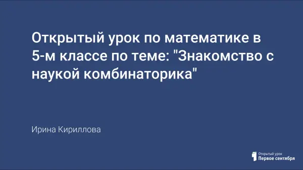 Урок математики для 5-го класса. В переизданных учебниках математики 5 и 6 классов Н.Я. Виленкина, В.И. Жохова введена новая рубрика "Забач"Ю помогающие учиться думать рассуждать, делать наблюдения и выводы. Задачи классифицируются и решаются на одном уроке, либо в начале учебной четверти, либо в конце. В данной статье показан один из таких уроков. Само понятие комбинаторики не рассматривается в учебнике, но для расширения кругозора учащихся можно ввести понятие "Комбинаторика".