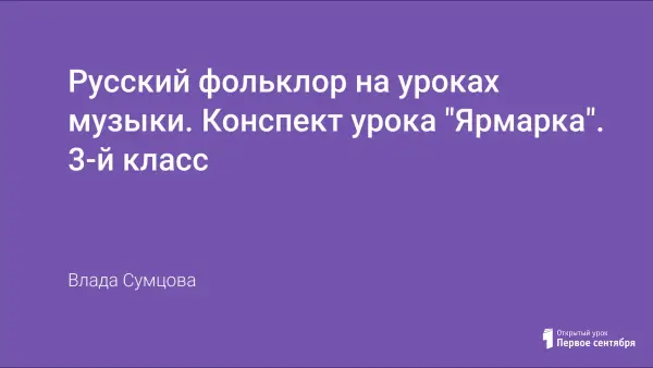 Обращение к народному музыкальному творчеству в единстве познания и разнообразных форм художественной деятельности помогает развитию творческого потенциала личности и обеспечивает в дальнейшем ее осознанное и активное участие в творческом преобразовательном процессе в любых сферах жизни. Краткая аннотация программы "Музыка моего народа" и конспект урока музыки в 3-м классе по теме "Ярмарка".