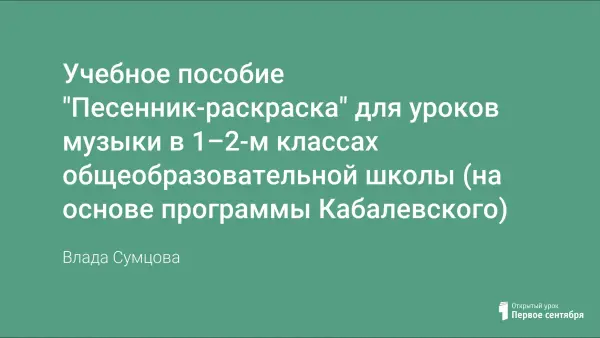 Данное пособие выполняет роль рабочей тетради для домашних занятий по музыке. Смысл его заключается не только в том, чтобы служить сборником текстов песен. Многие задания, которые делают дети дома, нацелены на сочетание умственной и мелкой моторной работы, что, несомненно, улучшает запоминание слов песен, терминов, фамилий композиторов. Приведены различные типы заданий, в приложениях даны некоторые страницы пособия.