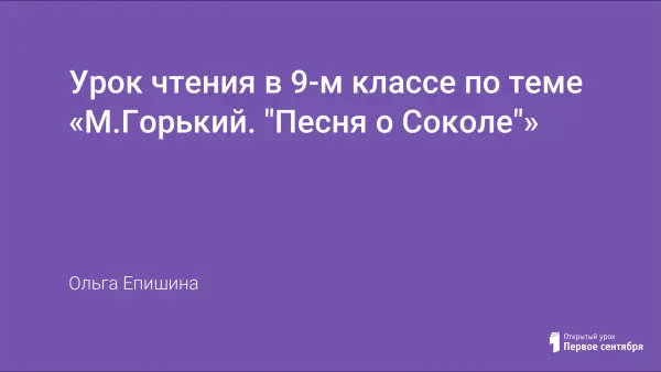 Урок чтения в 9-м классе (программа VIII вида) посвящен творчеству М.Горького. Одним из главных принципов обучения в коррекционной школе является принцип коммуникативной направленности, поэтому на уроках чтения необходимо развивать устную речь детей, формировать речевые и коммуникативные умения.