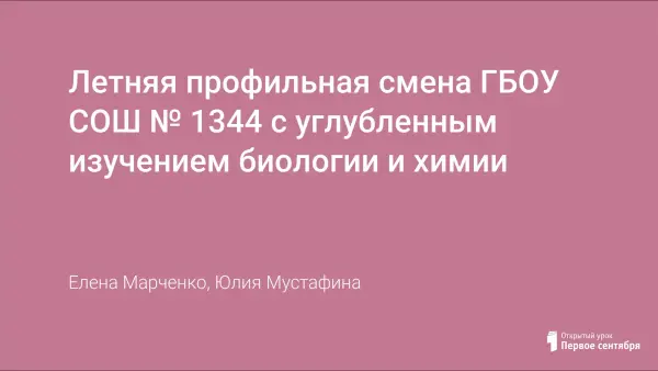 Летняя профильная смена ГБОУ СОШ № 1344 с углубленным изучением биологии и химии