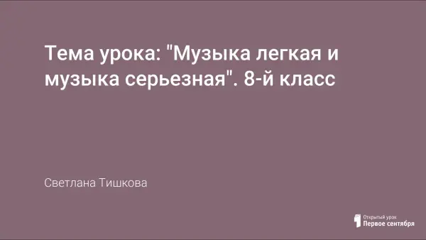 Вводный урок в тему "Лёгкая и серьёзная музыка". Осознать, какая музыка станет предметом интереса на уроках, помогает образный анализ песни. Обращение к знакомому произведению Баха и его обработке позволяет сравнить и дать оценку образному строю первоисточника и его современного варианта. Цитаты о музыке помогают понять, что лёгкая музыка является только частью музыкального искусства. Она может поднять настроение, но слушатель лишён радости открытия внутренней, глубинной сути, которая скрыта в музыке серьёзной.