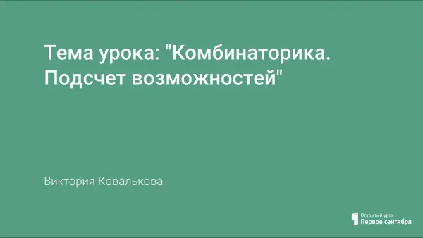 Основная цель занятия – научить решать задачи на подсчет числа вариантов, ввести понятие и формулу подсчета числа перестановок с помощью факториала.