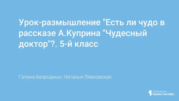 Урок-размышление "Есть ли чудо в рассказе А.Куприна "Чудесный доктор"?. 5-й класс