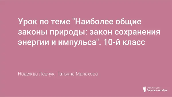 Урок по теме "Наиболее общие законы природы: закон сохранения энергии и импульса". 10-й класс
