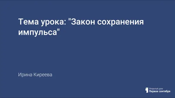 Комбинированный урок физики в 8-м классе по учебнику С.В. Громова, Н.А. Родиной "Закон сохранения импульса" разработан с целью развития интереса к предмету посредством демонстрационного эксперимента.