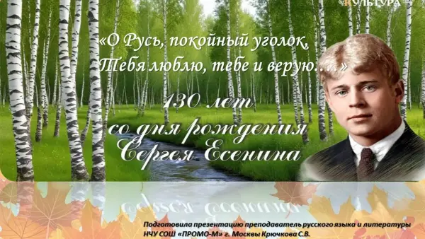 Движется, живёт по своим законам мир поэзии, а поэзия — это Вселенная души человечества. Непрерывно нарождаются и вспыхивают в этом чудесном мире поэтические звёзды. Одни сгорают и навсегда исчезают ещё при жизни их “хозяина”, свет души от других доходят к нам на протяжении десятилетий. И лишь немногие, очень немногие согревают народную “живую душу” в веках, разгораясь со временем всё ярче и ярче. Имя одной из таких звёзд в созвездии поэтической России — Сергей Есенин. Оно — вечно…