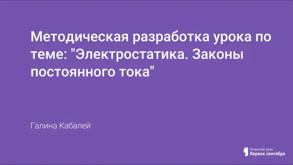 Данная методическая разработка представляет собой итоговое занятие тем "Электростатика" и "Законы постоянного тока" по модулю "Основы электродинамики".