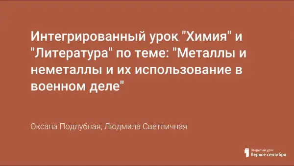 Интегрированный урок "Химия" и "Литература" по теме: "Металлы и неметаллы и их использование в военном деле"