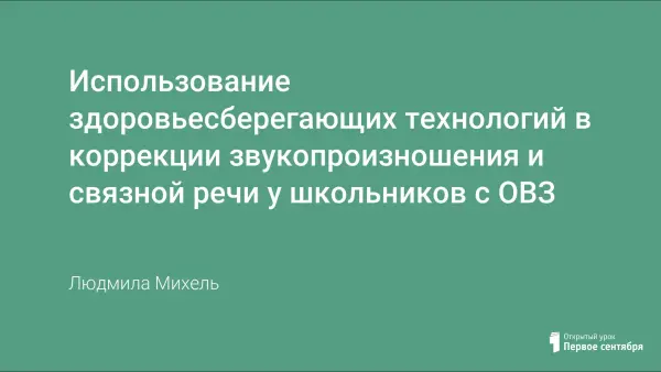 Цель занятия: развитие правильного звукопроизношения и связной речи через использование здоровьесберегающих технологий у школьников с ОВЗ.