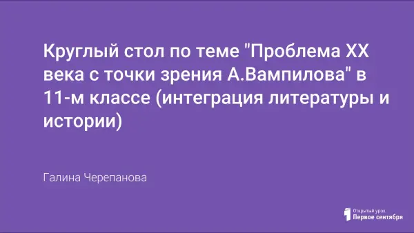 Тема урока: "Проблемы 20 века с точки зрения А. Вампилова".