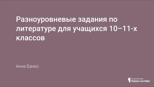 Предлагаются контрольные разноуровневые задания по литературе для учащихся 10-11-х классов. В содержании этих контрольных работ реализуются основные требования разноуровнего обучения: каждый учащийся может выбрать наиболее приемлемый для него вариант и набрать желаемое количество баллов.