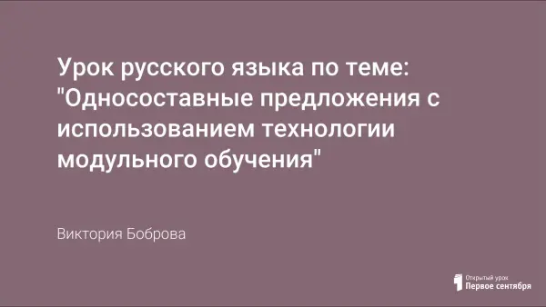 Данная работа - конспект контрольно-обобщающего урока "Односоставные предложения" в 8-м классе. Используя на уроке элементы технологии модульного обучения, удается всесторонне повторить и систематизировать материал по теме, а также создать условия для развития у школьников умений аргументировать, доказывать, выделять главное, сравнивать, обобщать и классифицировать.