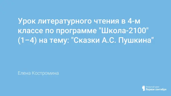 Урок литературного чтения по программе "Школа-2100" (1-4) посвящён сказкам А.С. Пушкина. Разнообразие видов работы на уроке: тест, цифровой диктант, игры - позволяет повысить интерес детей к произведениям великого русского писателя и к книге в целом. Урок нацелен на формирование умения понимать глубокий смысл произведения, обращая внимание на детали.