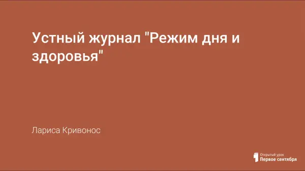 Устный журнал "Режим дня и здоровье", сценарий которого предлагается в статье, учит детей ориентироваться во времени, беречь каждую минуту, соблюдать режим дня - а значит, быть здоровым.