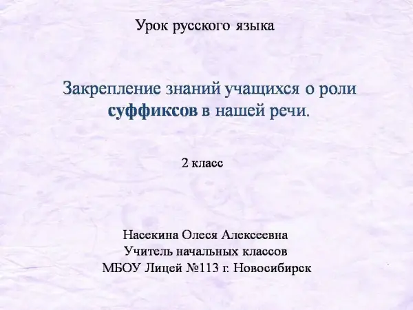 Закрепление знаний учащихся о роли суффиксов в нашей речи