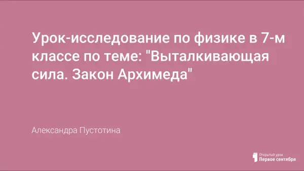 В ходе урока учащиеся выдвигают гипотезы; работая в группах, проводят исследование - экспериментальным путем устанавливают от чего зависит выталкивающая сила; доказывают и опровергают свои предположения; представляют результаты своей работы; формулируют закон Архимеда; применяют полученные знания при решении задач.