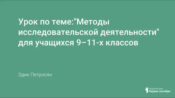 Урок предназначен для учащихся, выполняющих исследовательские работы в течение учебного года по различным предметам. В ходе урока по междисциплинарному обучению, основанному на технологии развивающего обучения, учащиеся смогут: актуализировать понятия "структура", "тема", "цель", "задачи" исследовательской деятельности; дать свое и узнать научное определение понятия "метод", классы и виды методов; проверить в своей исследовательской работе соответствие предполагаемых к использованию методов и их фактическое наличие в основном тексте работы.