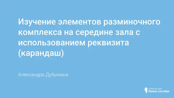 Цель: познакомить учащихся с элементами разминочного комплекса на середине, научить работать с реквизитом через игровую технологию.