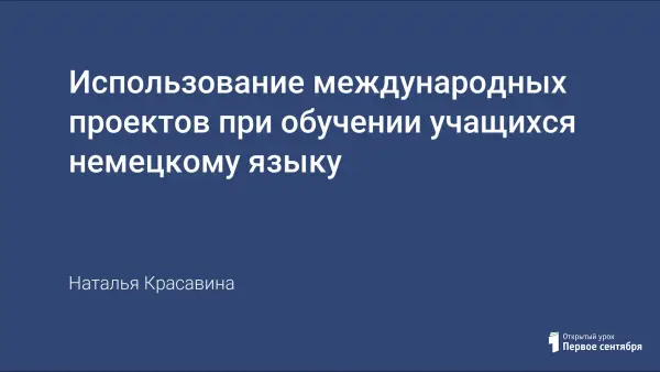 Международные проекты, ориентирующиеся на реальные интересы и потребности школьников, позволяют осуществлять личностно ориентированный подход. Участвуя в международных проектах, учащиеся включаются в диалог культур, учатся быть толерантными, избавляются от предрассудков и стереотипов. Широкие возможности для виртуального общения и сотрудничества школ из России и Германии предоставляют Интернет и электронная почта.