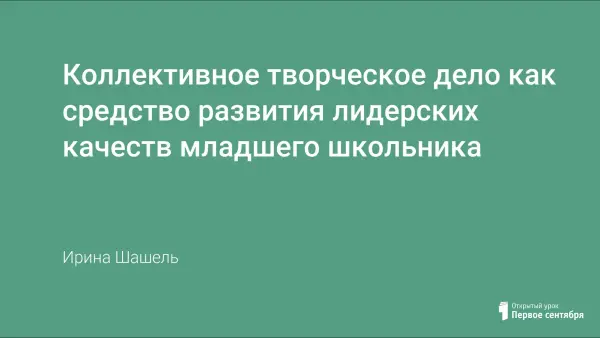 Современные дети младшего школьного возраста способны проявлять инициативу, самостоятельность и творчество, то есть лидерские качества. Необходимо обратить внимание на то, что развитие этих качеств должно проходить в коллективной деятельности. Важно создать такие педагогические условия, при которых эта деятельность будет результативна.