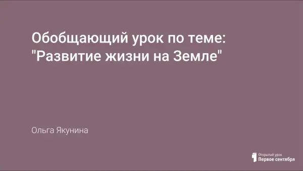 Для наиболее полного усвоения темы "Развитие жизни на Земле" проводится урок-обобщение. Так как тема трудная для понимания учащихся 5-го класса, урок разработан в форме игры, что позволяет заинтересовать, привлечь внимание и обогатить словарный запас учащихся. Для врабатывания дается задание по повторению терминологии, затем идет работа по ленте времени, ученики наблюдают последовательность образования биологических организмов на земле через игровые конкурсы. Конкурсы составлены так, что привлекают интерес учащихся, развивается мышление, внимание, умение работать в группе, умение действовать в нестандартной ситуации. При этом закрепляются названия исторических эр, биологических живых организмов.