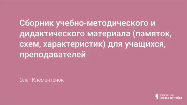 Сборник состоит из используемых различных правил, памяток, и рекомендаций по работе с исторической и различной информацией. Доступный для каждого ученика, он постоянно обновляется (не в последнюю очередь усилиями самих учащихся и учителей - коллег). Может использоваться как непосредственно на уроке, в том числе и в виде ксерокопированного раздаточного материала, так и для самостоятельной домашней работы учеников.