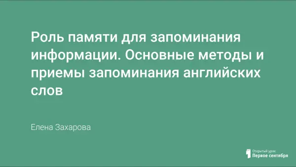 В современной школе объем изучаемого материала увеличивается и усложняется, следовательно, возрастает нагрузка на память. Чтобы облегчить работу памяти, раскрыть ее резервы, необходимо овладеть основными методами и приемами запоминания информации, использовать эффективные средства. Для запоминания информации, для заучивания иностранных слов, структур и т.д. нужны не только теоретические знания, но и их практическое использование в учебной деятельности – как ученикам, так и учителям.