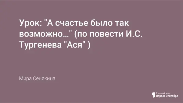 Этот урок - заключительный при изучении повести И.С. Тургенева "Ася".