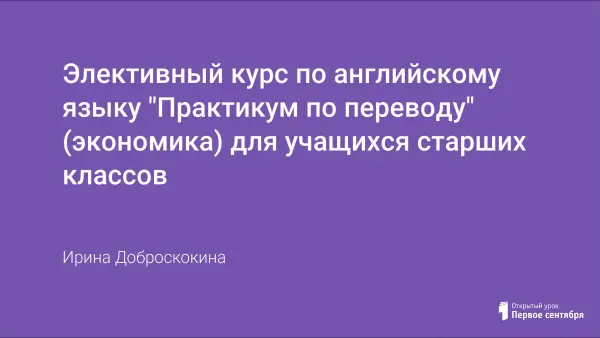 Элективный "Практикум по переводу для студентов экономических специальностей" составлен с целью оказания помощи учащимся старших классов в изучении иностранного языка и может быть использован преподавателями и учащимися для классной и внеаудиторной работы. Подобранный текстовый, лексический и грамматический материал способствует развитию навыков чтения, извлечения и обработки информации, а также работы со словарем и справочными материалами по специальности. Разнообразие грамматических упражнений позволяет учащимся повторить курс грамматики в ходе работы над текстовым материалом. Тексты подобраны с учетом знаний, полученных учащимися в процессе изучения общеобразовательных дисциплин.