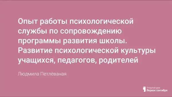 Представлен опыт работы психологической службы по сопровождению программы развития начальной школы, как школы культурологической направленности. Целью сопроводительной деятельности является создание социально-психологических условий для сохранения и укрепления психологического здоровья учащихся, развитие и реализацию общекультурного личностного потенциала каждого ребенка.