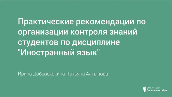 Практические рекомендации по организации контроля знаний студентов по дисциплине "Иностранный язык"