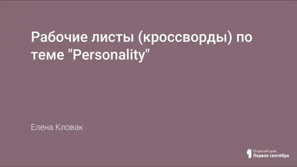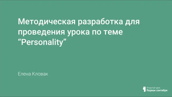 Методическая разработка для проведения урока по теме “Personality” носит коммуникативный характер и способствует формированию диалогических речевых навыков, в разработке представлены два варианта заданий (Student 1, Student 2), которые отличаются содержанием в задании “Ask your partner”. Разработка также содержит задания для самостоятельного выполнения (в классе или в качестве домашней работы), которые носят творческий характер и направлены на отработку лексических и письменных навыков по изучаемой теме.