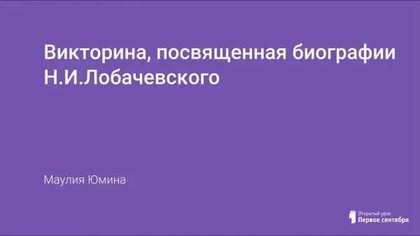 Урок-викторина знакомит учащихся с жизнью и деятельностью Н.И.Лобачевского.