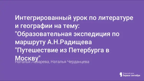 Интегрированный урок по литературе и географии на тему: "Образовательная экспедиция по маршруту А.Н.Радищева "Путешествие из Петербурга в Москву"