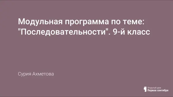 Модульная программа по теме: "Последовательности". 9-й класс