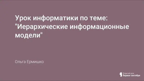 Урок информатики из цикла типы информационных моделей, посвящён изучению иерархических информационных моделей. На уроке школьники знакомятся с понятием систематизации и классификации объектов и рассматривают статические и динамические иерархические модели. Для расширения кругозора приводятся примеры изображения моделей в форме графа, которые используются во многих областях практической и научной деятельности людей. По ходу рассказа учителя используется презентация, отражающая ключевые моменты темы и графическое представление нового материала.