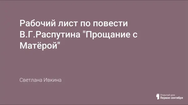 Рабочий лист используется на уроках литературы в 11-м классе во время изучения повести В.Г.Распутина «Прощание с Матёрой». После самостоятельного прочтения учащимся предлагается, используя материал видеоурока, создать общее впечатление о книге, героине и идейной направленности произведения. особое внимание уделяется работе со словом, текстом.