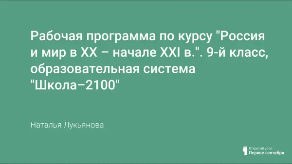 Рабочая программа является составной частью развивающей образовательной системы «Школа–2100», в ней отражен федеральный компонент государственного стандарта по предмету. Новизна программы заключается в том, что она предусматривает синхронное изучение событий, происходящих в России и мире в XX – начале XXI века, что дает возможность анализировать роль России в мире, проводить сравнительный анализ исторического развития стран, а также показать единство мира в XX – начале XXI века.
