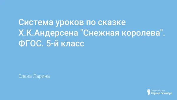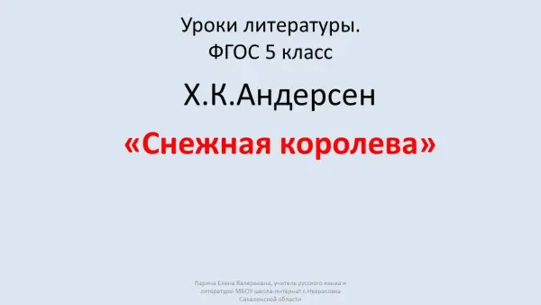 Представлена система уроков по сказке Х.К.Андерсена "Снежная королева" в 5-м классе.