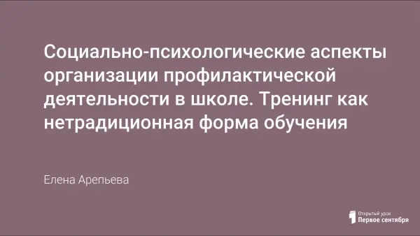 Подростковый возраст – один из самых сложных периодов жизни человека. В этом возрасте основным видом деятельности является учение. На мой взгляд, в данном возрасте следует уделять внимание нетрадиционным формам и методам обучения, особенно в сфере профилактической деятельности в общеобразовательных учебных заведениях. В статье рассматривается тренинг как нетрадиционная форма обучения, являющаяся одной из лучших в профилактической работе, в которую входят социально-психологические аспекты организации деятельности на основе проведения тренингов в малых группах.