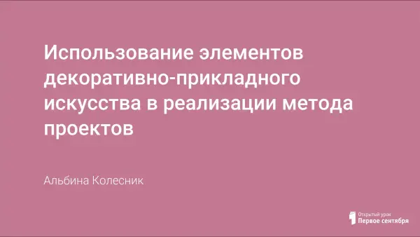 В работе описан метод проектов, используемый в изучении декоративно-прикладного творчества учащимися. К статье прилагается работа – победитель Всероссийской школьной олимпиады по технологии.
