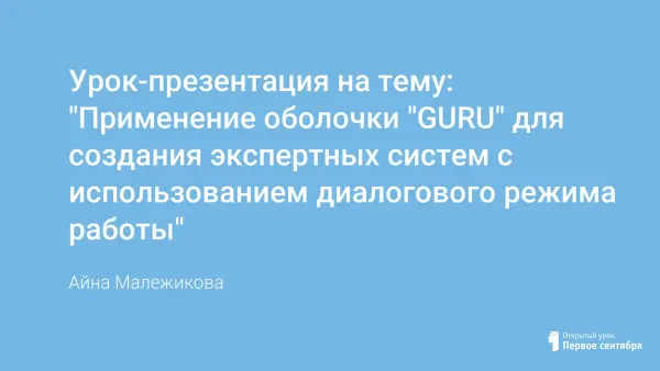 Данный урок способствует формированию навыков применения оболочки "GURU" для создания экспертных систем с использованием диалогового режима работы. Изложение нового материала проводится с применением современных компьютерных технологий, при использовании которых сохраняется педагогическая доминанта, учтены дидактические задачи, творческие интересы учителя, особенности класса, индивидуальные склонности каждого ребенка, позволяющие расширить вариативность информационного и учебно-методического обеспечения урока, реализации принципа личностно ориентированного образования. Цели урока связаны с формированием основ научного мировоззрения школьников, формированием теоретического, творческого, операционного мышления, творческих способностей, подготовкой к жизни, труду, продолжению образования.