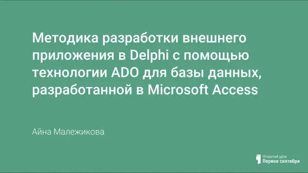 В данной статье рассматривается методика разработки внешнего приложения в Delphi с помощью технологии ADO для базы данных, разработанной в Microsoft Access. Предусмотрена возможность добавления, удаления редактирования записей, а также осуществление поиска, фильтрации и сортировки данных.