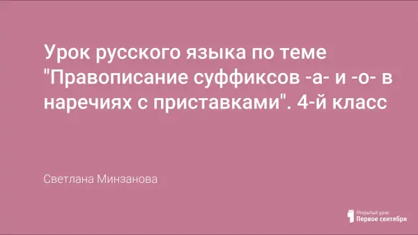 На уроке русского языка по учебнику А.В. Поляковой учащиеся знакомятся с правописанием суффиксов -а, -о в наречиях с приставками. Для запоминания правила дан алгоритм написания суффиксов как в форме стихотворения, так и в виде схемы. Во время урока учащиеся заполняют «Карту самоконтроля» при помощи которой учитель в конце урока сможет оценить каждого ученика.