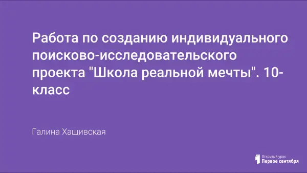 Представлены этапы работы над индивидуальным поисково-исследовательским проектом в 10 классе «Школа реальной мечты». Ценность работы - в самом проекте (приложение). Проведен и проанализирован опрос учеников и педагогов, внесены конкретные предложения по модернизации некоторых элементов модели школы, создания более комфортных условий для учеников и педагогов.