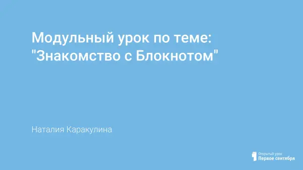 Разработанный мною модульный урок по теме "Знакомство с "Блокнотом" был апробирован в 5-х классах (1-й год обучения). Тип урока: изучение нового материала. На уроке, используя мультимедийную установку, осуществила поставленные задачи: познакомила учащихся с текстовыми редакторами (Блокнот, WordPad, Word), их назначением, основными возможностями; рассмотрела на примере Блокнота структуру графического интерфейса; познакомила с основным меню, командами основного меню текстового редактора Блокнот; учащиеся отработали на практике ввод текста: заглавная буква, новый абзац, символы ": ( ) . ,".