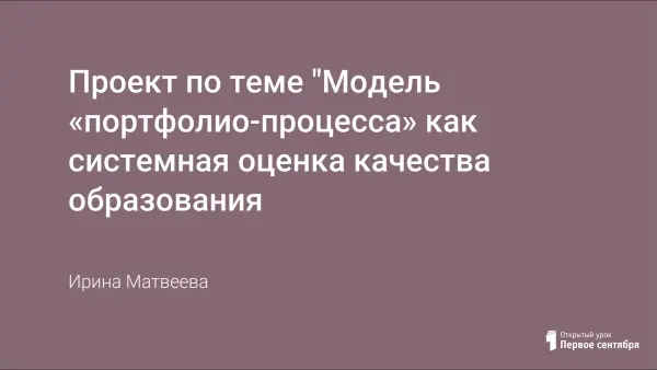 Представлен проект по теме "Модель "портфолио-процесса", как системная оценка качества образования".