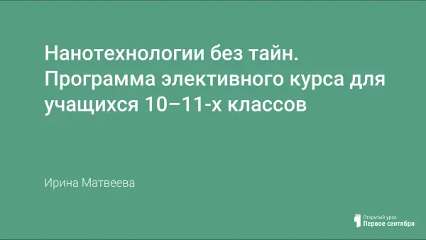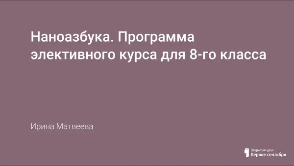 Наноазбука. Программа элективного курса для 8-го класса