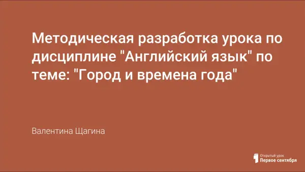 Считаю целесообразным провести этот урок как открытый потому, что он является своего рода смотром знаний и умений студентов. Темы "Город" и "Время года" достаточно интересны сами по себе как в лексическом, так и в грамматическом плане. Это позволяет студентам продемонстрировать все, чему они научились за 48 часов аудиторного времени.